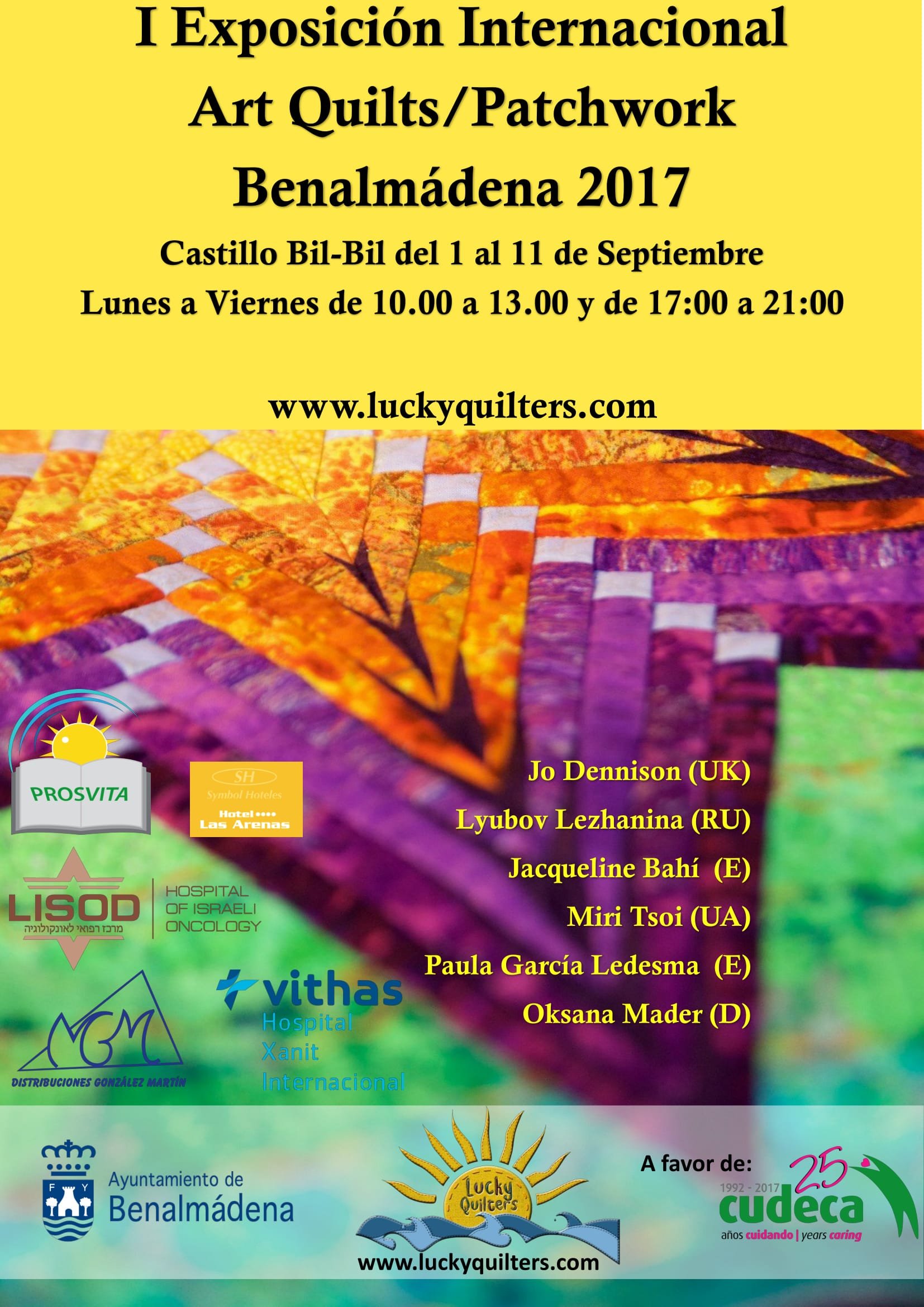 Together with the Ayuntamiento of Benalmadena (Malaga, Spain) we organized the First International Exhibition of Art Quilt and Patchwork, which takes place from 1 to 11 September 2017 in the castle of Bill- Bill in Benalmadena.